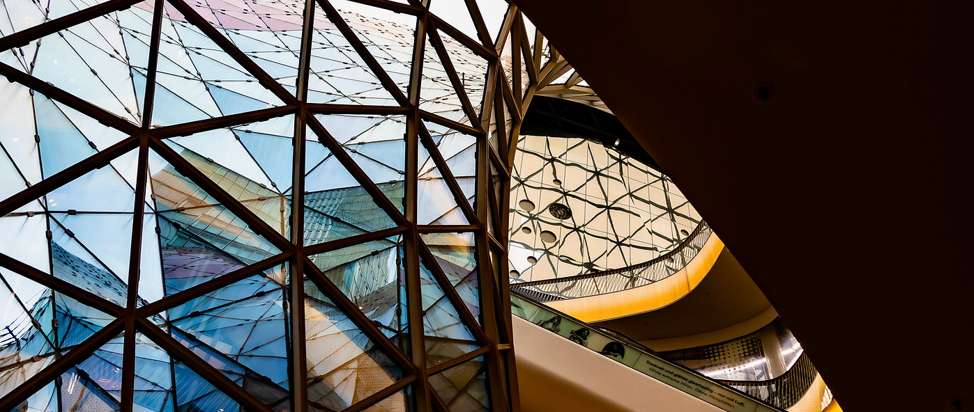The Vision: MyZeil in Frankfurt represents modern shopping architecture in its most radical form. Through the glass dome, the high-rises of the banking metropolis become an integral part of the interior space - the boundaries between commercial architecture and urban landscape dissolve. The warm yellow and beige tones of the consumption cathedral embody the emotional euphoria of shopping sprees, while the cool blue shimmer of the reflected financial architecture mirrors the calculating rationality of the banking metropolis. These color contrasts tell of two worlds: here the warm seduction of consumption, there the cool logic of capital. The spiral levels guide the eye through an architecture that unites these opposing forces of modern society in a single image.